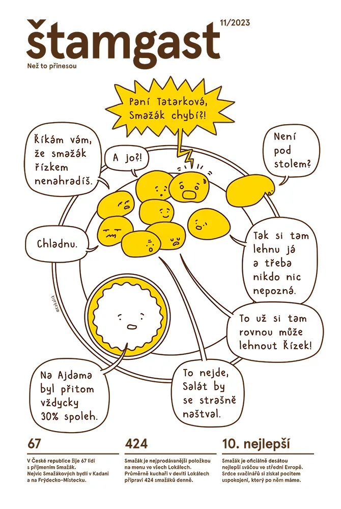 Rozhovor s výčepní Lokálu Hamburk Luckou Janouškovou, recept na sekanou, zajímavosti o Pražské šunce a článek o tom, kdo si může říkat štamgast.